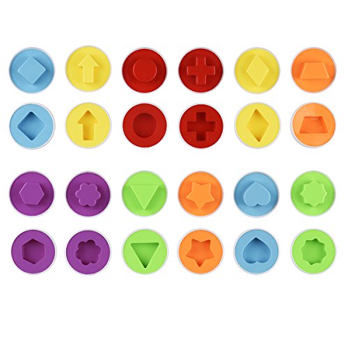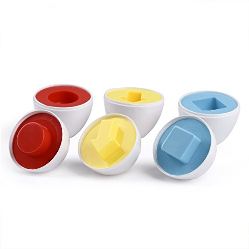 Hhyn Matching Eggs Set is a wonderful color and shape sorting toy. With these educational shaped eggs, you can train sorting and matching skills of your children. Let your kids recognize the color and shape when they split the eggs. This set includes 12 shaped puzzle eggs in 6 colors, 24 half pieces in total. Really a great gift package!