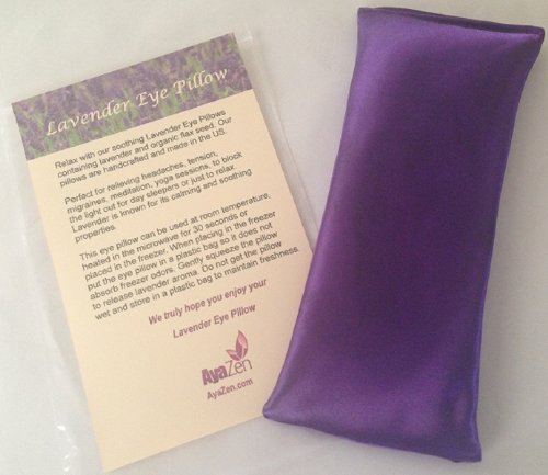 -. Feature : LAVENDER AROMATHERAPY- Natural scents of Lavender to help to relax, relieve tension and stress. / HOT OR COLD THERAPY-heat in the microwave for 30 seconds or chill in the freezer. When freezing use the bag provided so it does not absorb odors. / ACCUPRESURE-Organic Flax Seed provides acupressure for soothing natural healing. / BLOCK OUT LIGHT-AyaZen Lavender Eye Pillows completely block out light as it conforms to your face and eyes. These Silk Eye Pillows are perfect for sleep, yoga, relieve stress, meditation, help relieve migraines and headaches, puffy eyes or just to relax. / IDEAL FOR ALL AGES-AyaZen Lavender Eye Pillows are ideal for all ages, women, men and children. Available in Purple, Blue or Black. 100% Satisfaction Guaranteed