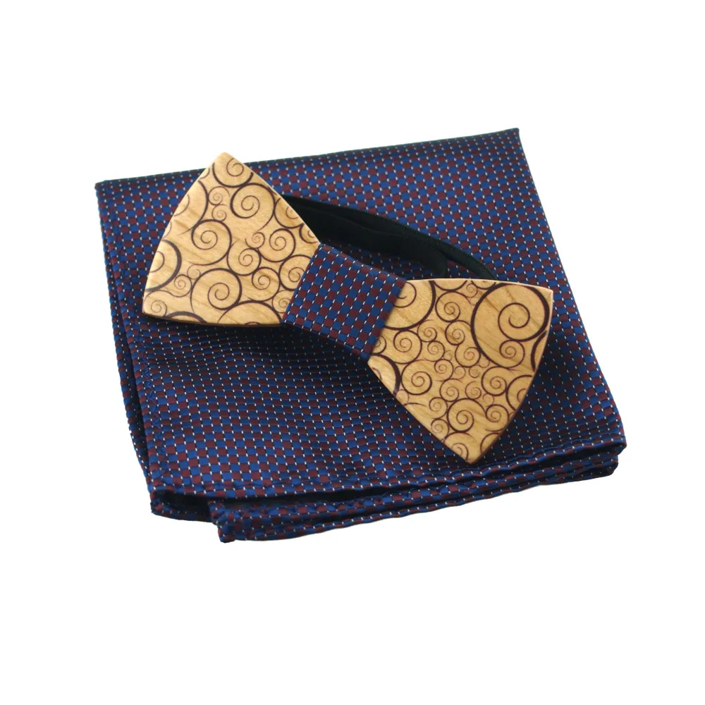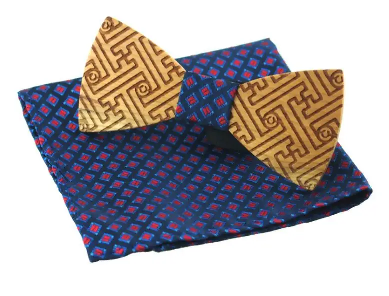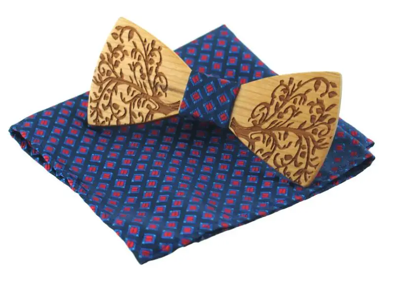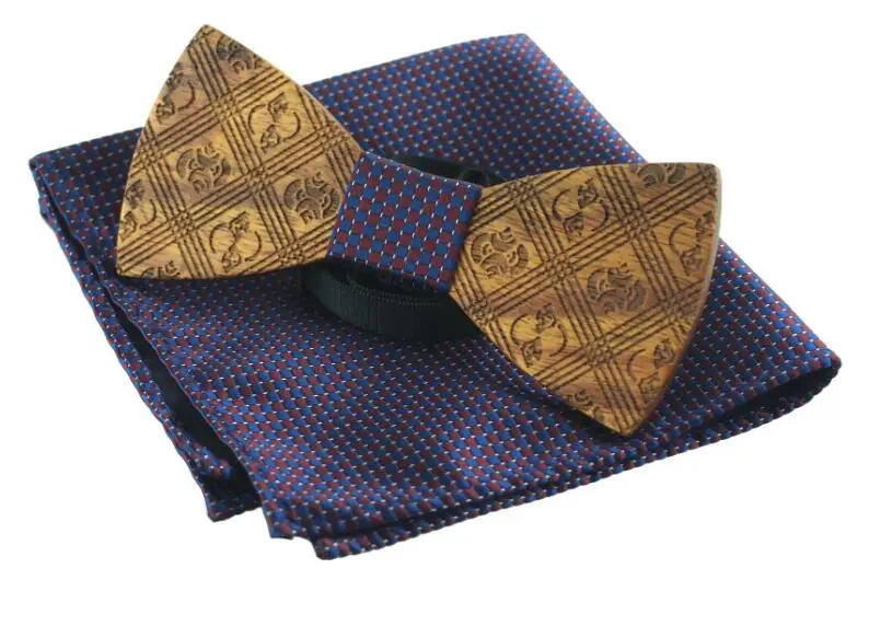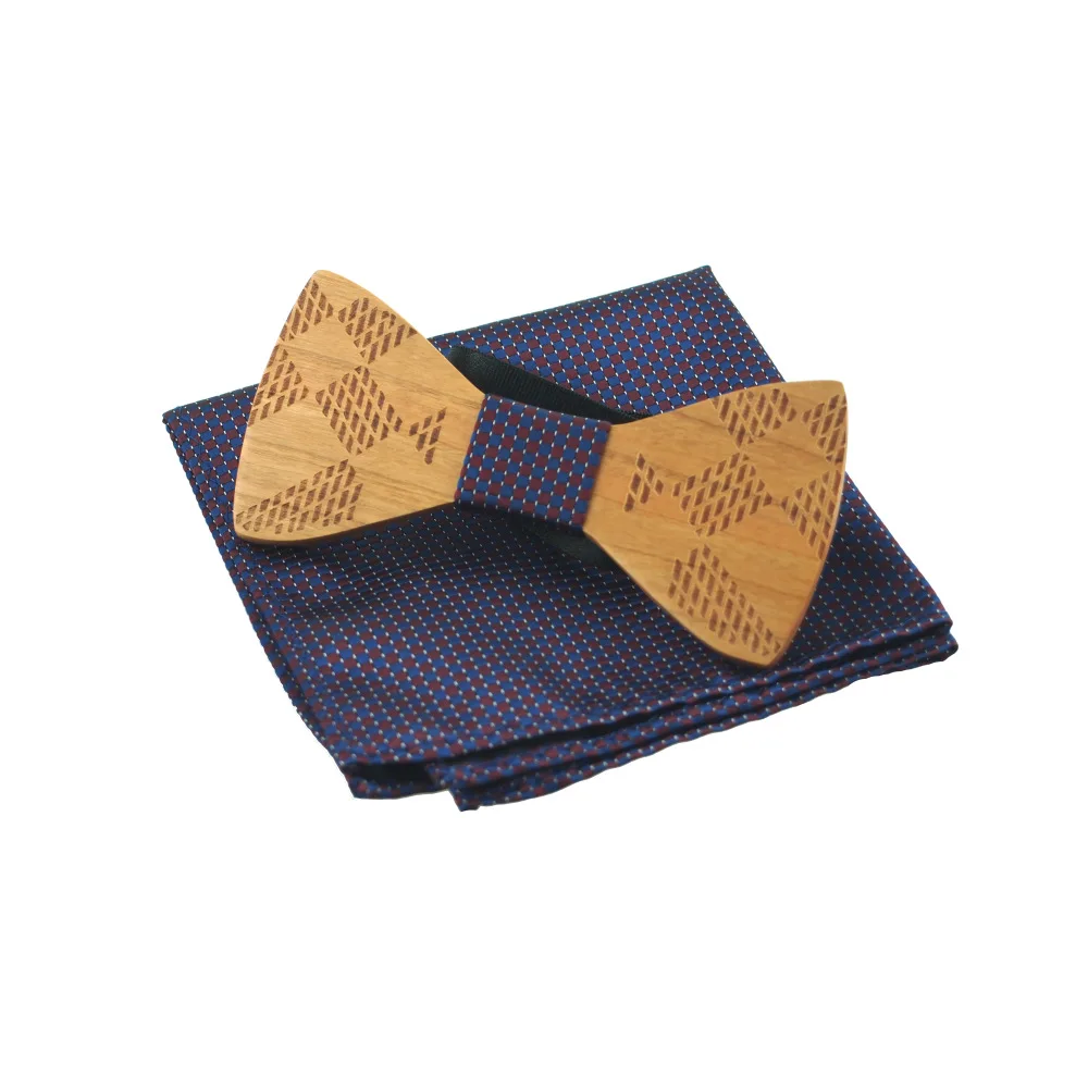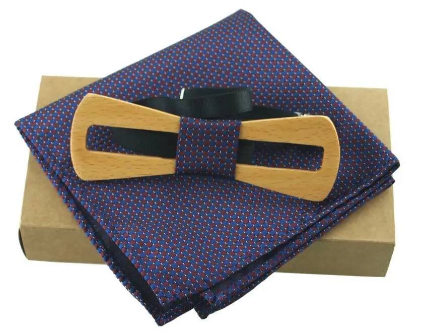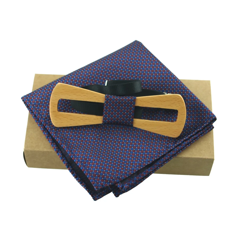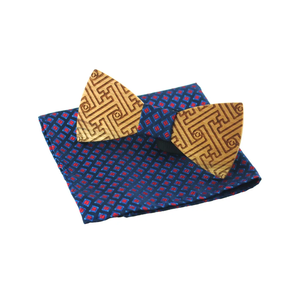 Item:Wooden Bow Tie And Handkerchief Set