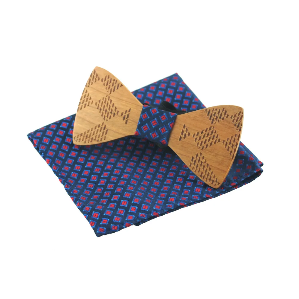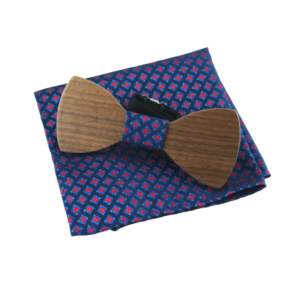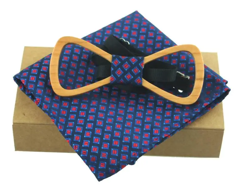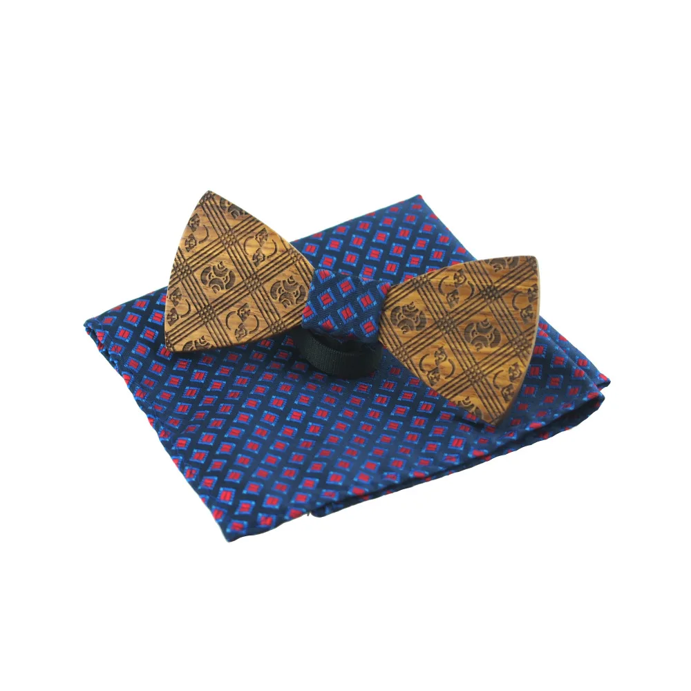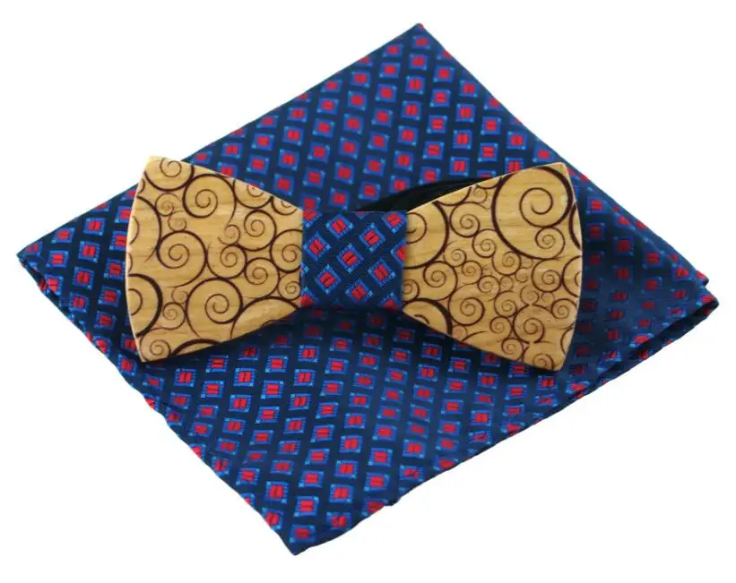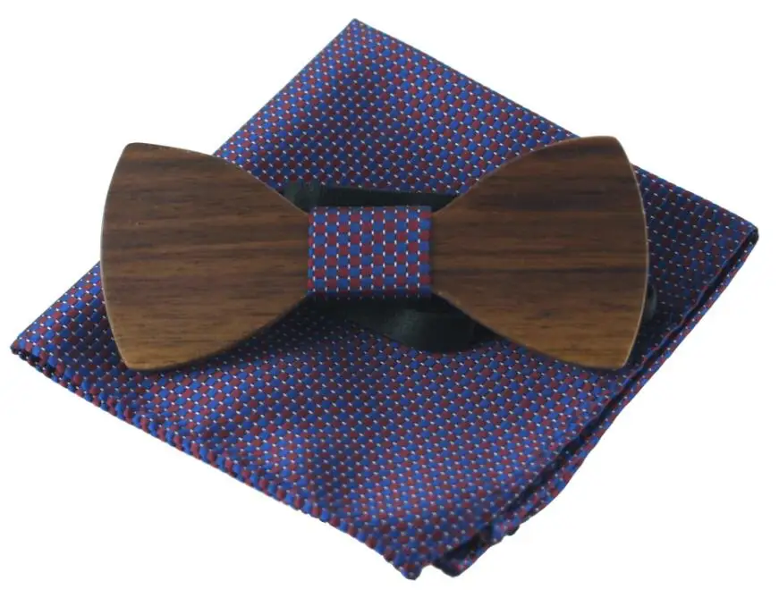 Item:Wooden Bow Tie And Handkerchief Set