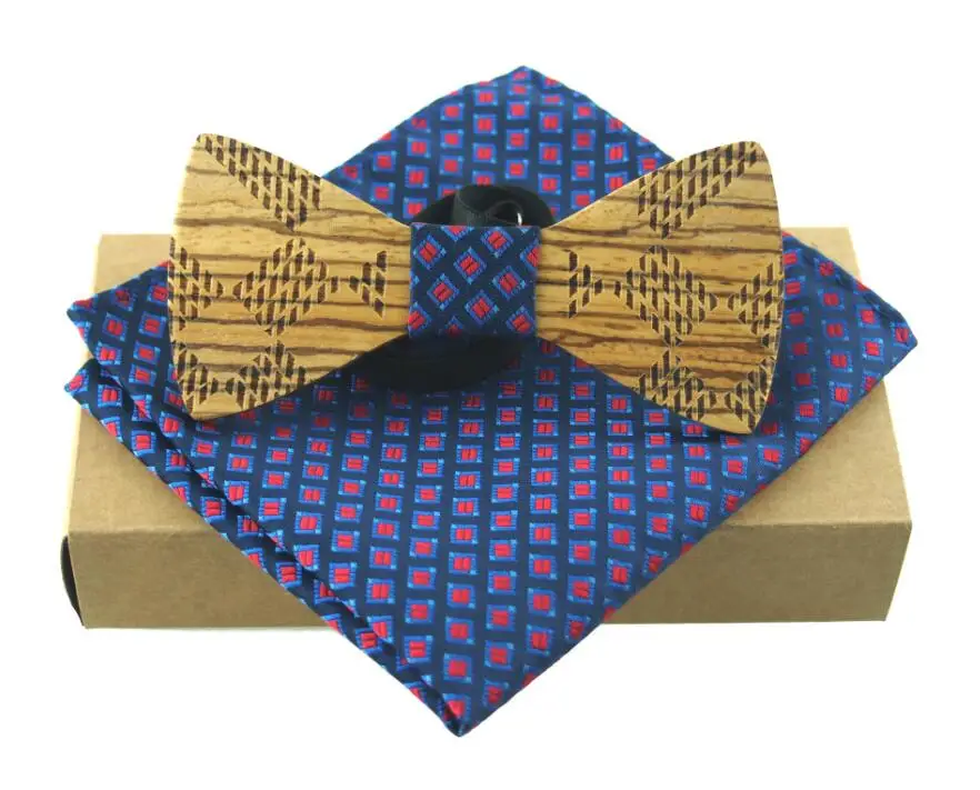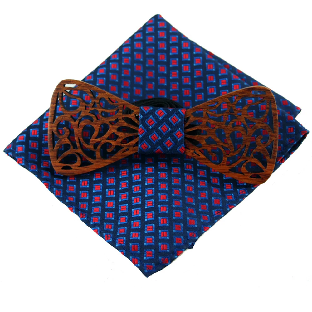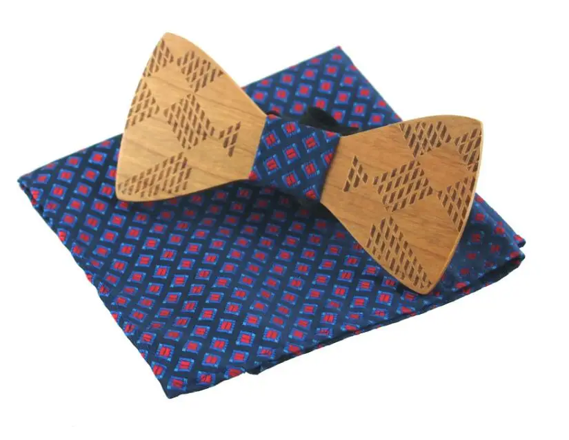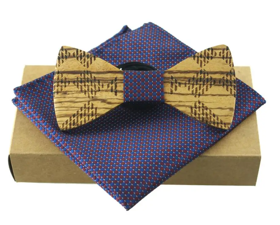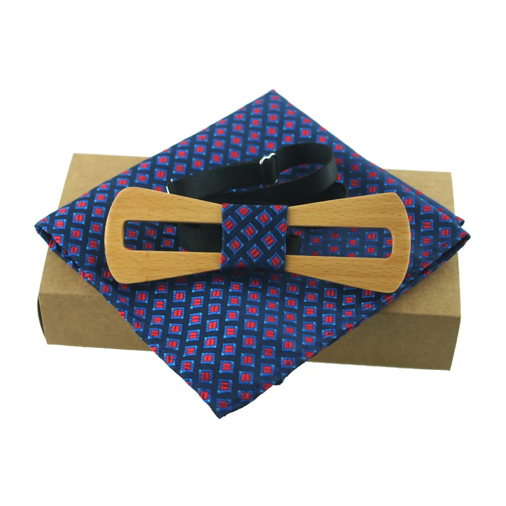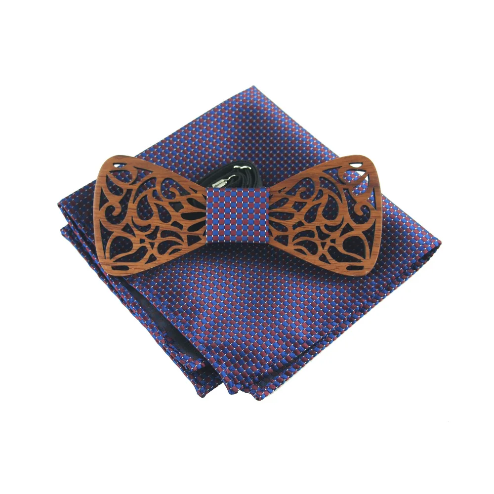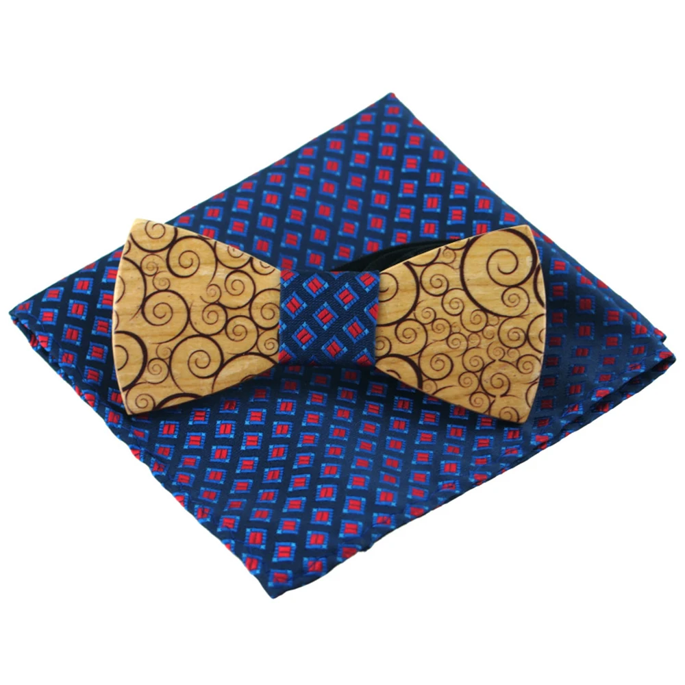 Item:Wooden Bow Tie And Handkerchief Set