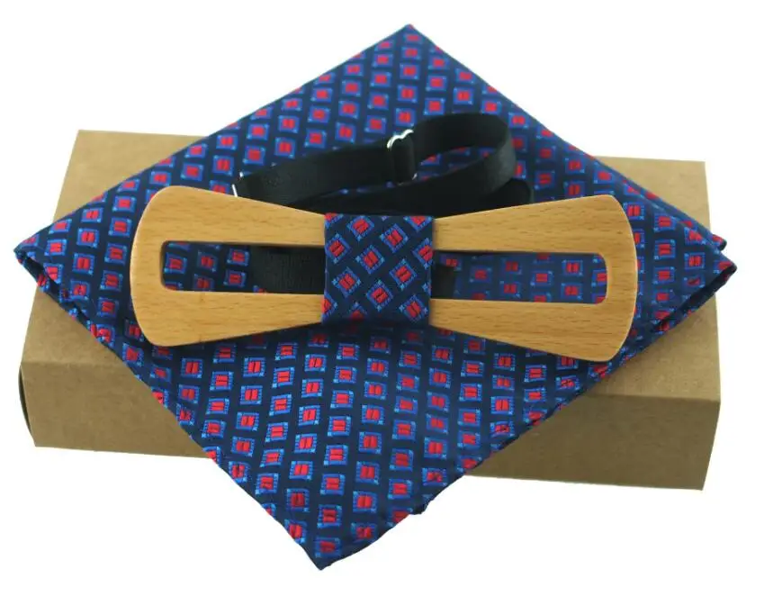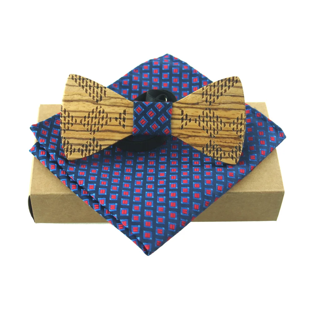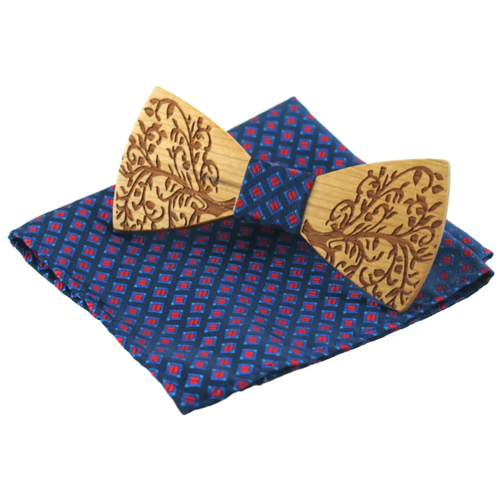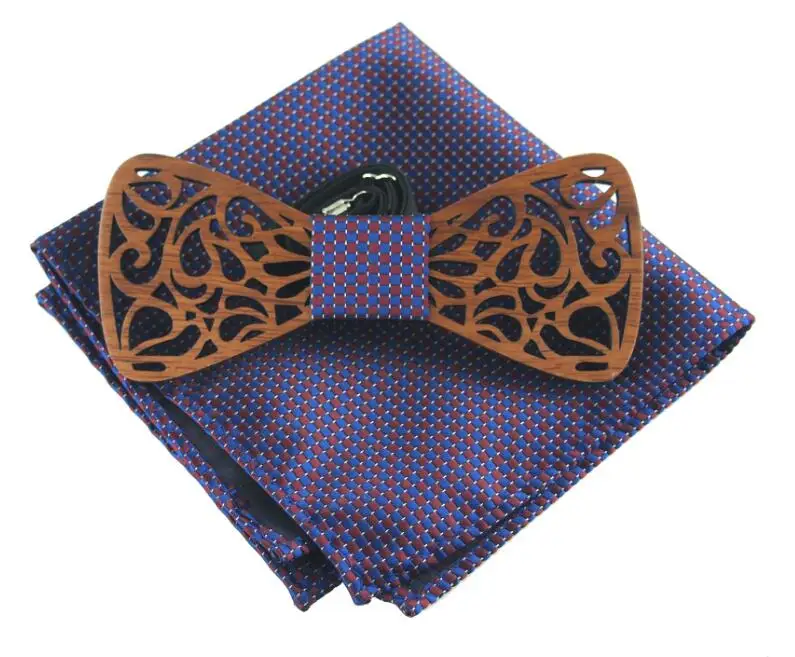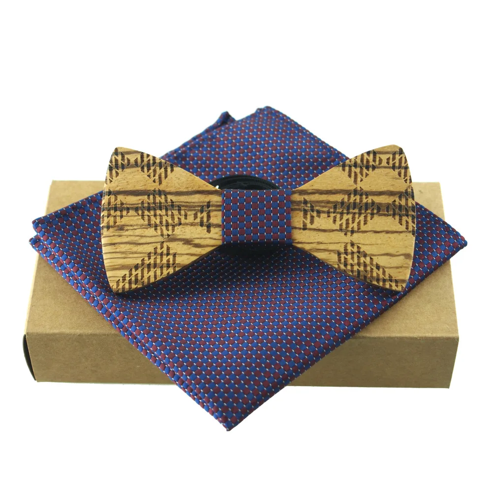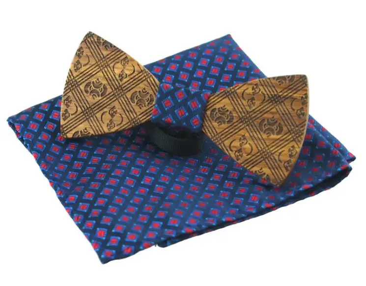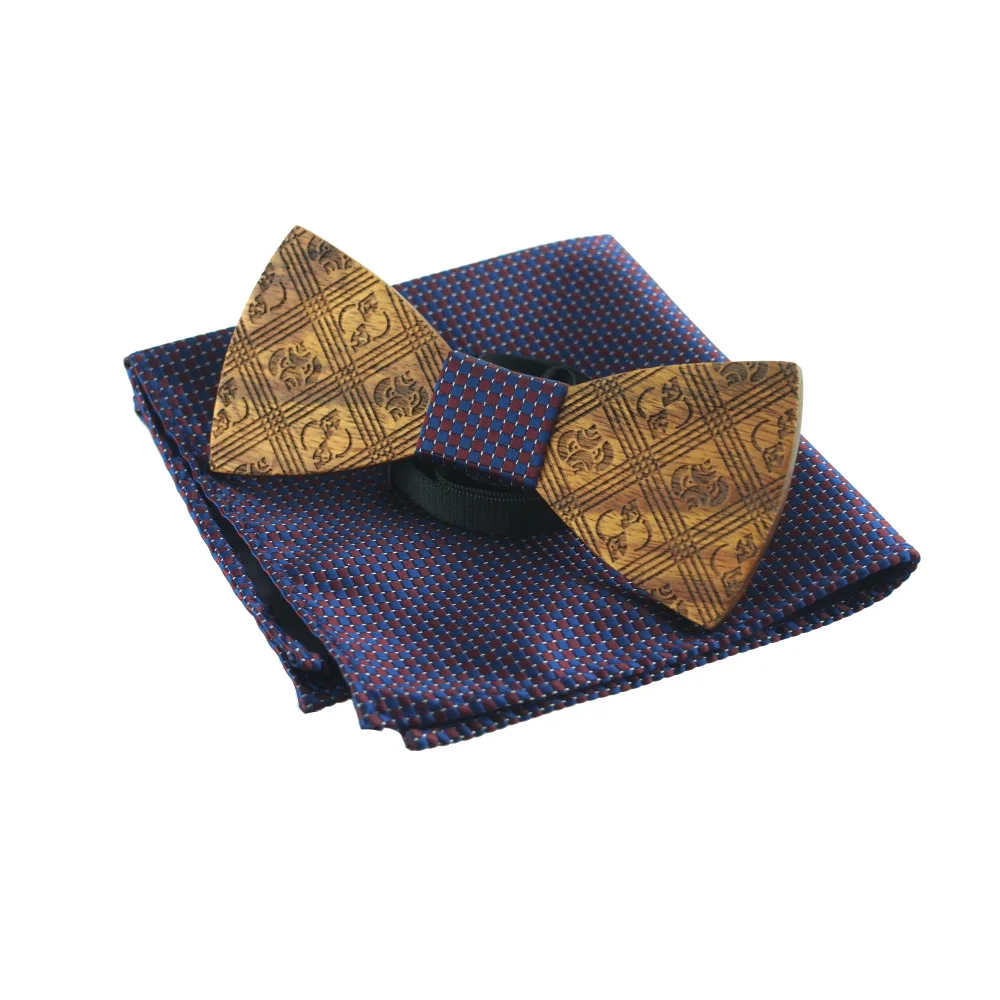Item:Wooden Bow Tie And Handkerchief Set