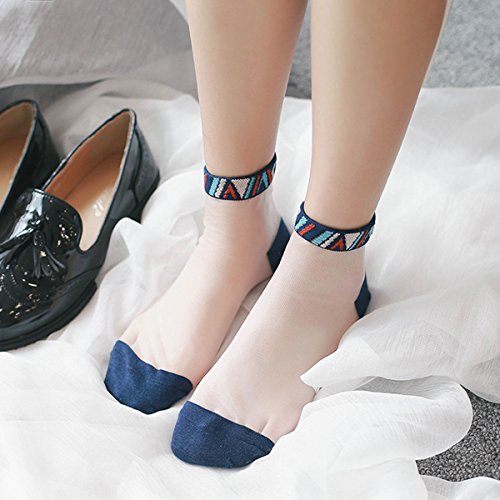 -. Title : Silky Transparent Folk-custom High Ankle Sheer Socks for Women Anti-slip(Set of 4 Pairs)
