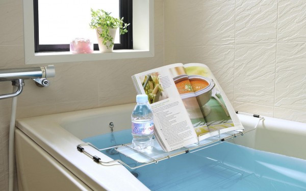 | ブックスタンドが取り外せて使用できます。ブックスタンドを外せば、防水のTVやラジオや携帯電話なども置けます。浴槽幅に合わせて52.5~75cmまでスライド可能!! |