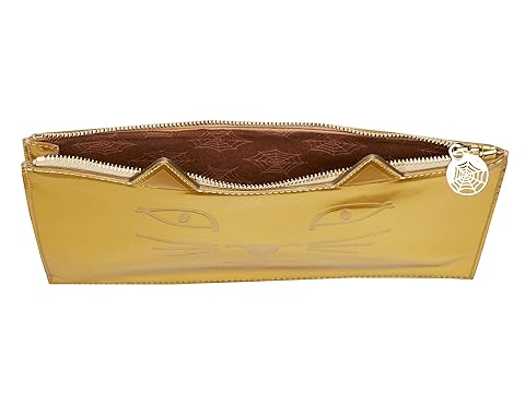 SKU: #8837163 Master function with perfect form carrying the Charlotte Olympia™#Kitty Pouch. Pouch made of leather in an eye-catching golden shine. Top zip closure. Playful kitten face featured in front. Custom lined interior features iconic spider web embossed throughout. Made in Italy. This item may ship with an attached security tag. Merchandise returned without the original security tag attached or a damaged tag may not qualify for a refund. Measurements: Bottom Width: 9 1?4 in Depth: 1?4 in Height: 6 1?2 in Weight: 3.4 oz |