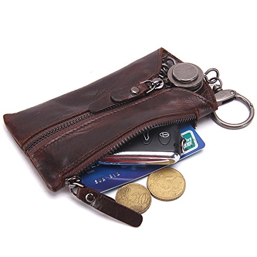 -. Title : Contacts Genuine Leather Zipper Coin Pocket Purse Car Key Case Holder Keychain Wallet