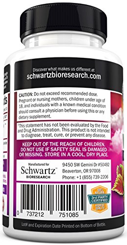 -. Binding : Health and Beauty -. Brand : Schwartz Bioresearch -. EAN : 0737212751085 -. Feature : 100% SATISFACTION GUARANTEE: Lose weight with our Forskolin for Weight Loss or your money back! / EXTREME APPETITE SUPPRESSANT, FAT BURNER & CARB BLOCKER: These pure forksolin weight loss pills will help you reduce hunger, decrease body fat, keep you fuller for longer and boost fat burning metabolism. / #1 EFFECTIVE FORSKOLIN DIET PILLS FOR FAST WEIGHT LOSS: Our forskolin capsules (coleus forskohlii, forskolin for weight loss) includes 20% standardized forskolin extract for rapid results (Coleus Forskolin). / #1 STRONGEST FORSKOLIN EXTRACT FOR WEIGHT LOSS: Exclusively Formulated by experts our forskolin weight loss supplement (pure forskolin extract) has been designed to deliver permanent & fast weight loss results. / NO SIDE EFFECTS - MADE IN USA - 100% NATURAL BEST FORSKOLIN: Endorsed by doctors on TV, this all natural weight loss supplement (the best fat burners for women & men) is 100% pure foreskolin with NO fillers, binders or artificial ingredients. -. IsAdultProduct : 0 -. Label : Schwartz Bioresearch -. LegalDisclaimer : These statements have not been evaluated by the Food and Drug Administration. This product is not intended to diagnose, treat, or cure any disease. -. Manufacturer : Schwartz Bioresearch -. MPN : FK60 -. PackageQuantity : 1 -. PartNumber : FK60 -. ProductGroup : Health and Beauty -. ProductTypeName : HEALTH_PERSONAL_CARE -. Publisher : Schwartz Bioresearch -. Size : 60 count -. Studio : Schwartz Bioresearch -. Title : Forskolin Extract for Weight Loss. Pure Forskolin Diet Pills & Belly Buster Supplement. Premium Appetite Suppressant, Metabolism Booster, Carb Blocker & Fat Burner for Women and Men Coleus Forskohlii -. UPC : 737212751085