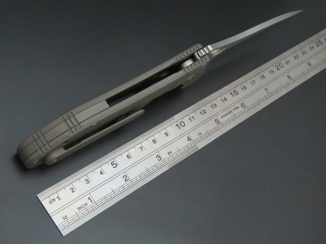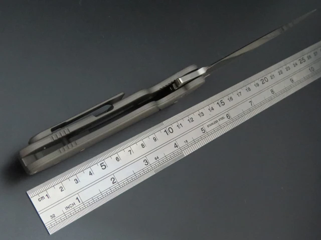 블레이드 길이: 95 미리메터 블레이드 재질: S35vn 핸들 재질: TC4 티타늄 블레이드 마무리:stonewash + 그리기 칼 무게: 170 그램 포장: 하이 엔드 선물 상자