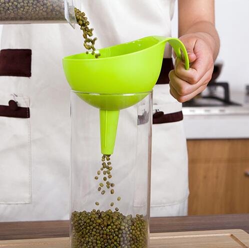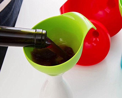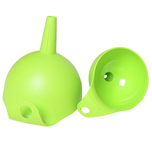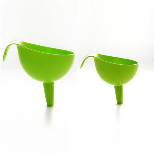 -. Feature : 2 piece multipurpose funnel set includes two size of funnels - meet all needs. / Large one - Height 5.5" (14 cm); Diameter of funnel body 4.5" (11.5 cm); Diameter of spout 0.6" (1.5 cm). / Small one - Height 4.3" (11 cm); Diameter of funnel body 3.5" (9 cm); Diameter of spout 0.4" (1 cm). / Material: Made of FOOD GRADE SAFETY high-heat plastic, extremely durable. / Easy to store, they can be nested or hanged (each funnel has a hole for hanging). Suitable for use with liquids from water to gas/oil, dry goods like spices, powders or seeds.