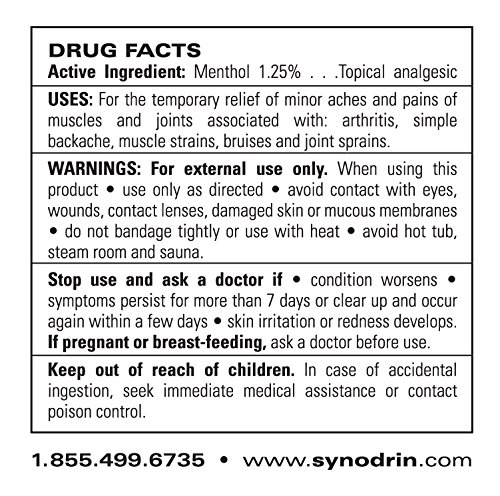 Studio : Natural Solutions For Life Publisher : Natural Solutions For Life Binding : Health and Beauty Product Description Synodrin targets pain at the source, inflammation. Synodrin topical gel is a fast acting joint pain relief formulated specifically to penetrate the skin quickly without leaving it greasy or sticky. Synodrin only has a very slight pleasant citrusy smell that goes away within minutes so that you can go about your day feeling great. Just apply generously to skin 3 to 4 times per day. Massage until fully absorbed. 0