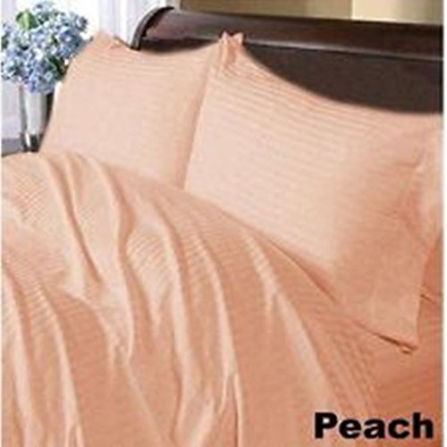 Deluxivity --100% Egyptian Cotton Cozy Bed Sheet Set ( 4-PCs ) in Striped Color's "Peach" Queen Size Sheets Fit's Up to 12" Deep Pocket Made By Galaxy's Linen Select Color's As Per Choice ( 600 TC )