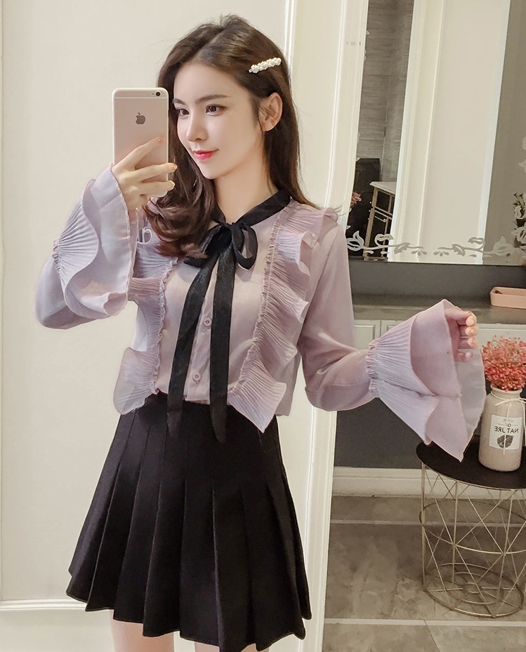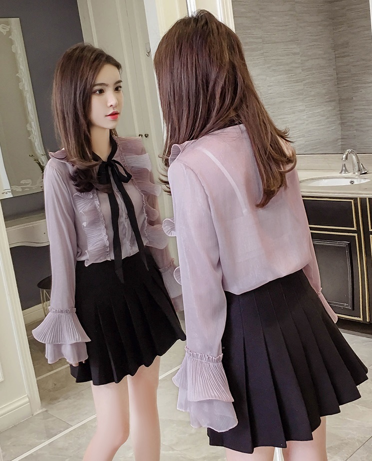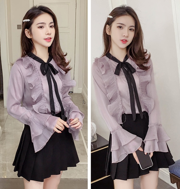 薄手のシフォン素材でロングシーズンご愛用頂けるガーリーなブラウスです◎