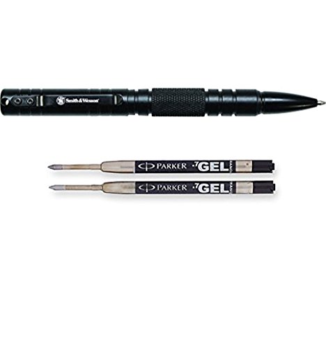 -. Title : Bundle Includes 2 Items - 1 Smith & Wesson Military & Police SWPENMPBK Tactical Pen and PARKER QUINK Ballpoint Pen Gel Ink Refills, Medium Tip, Black, 2 Count