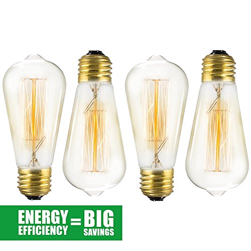 Edison Bulb 4 Pack - ST64 - Squirrel Cage Filament - Dimmable, Edison Style Vintage Light Bulbs