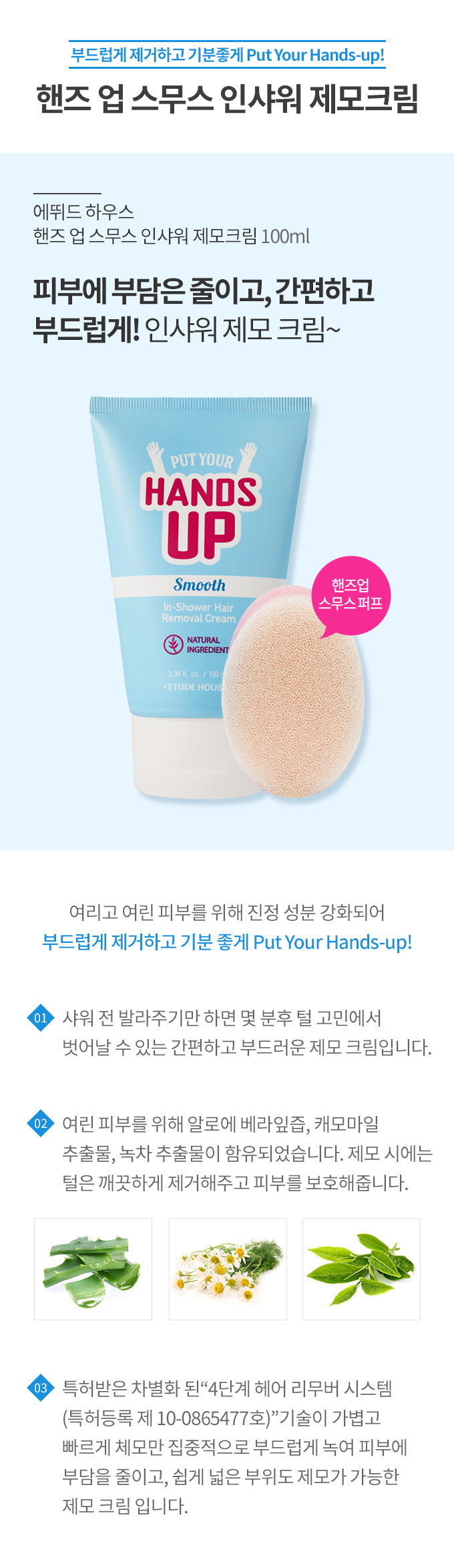 ハンズアップスムースシャワー脱毛クリームセット100ml + 1個(ハンズアップスムースパフ) - [韓国コスメ]