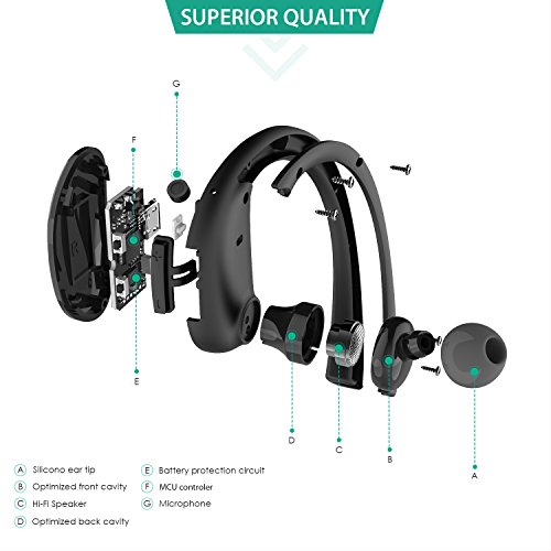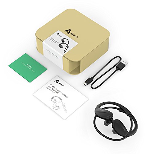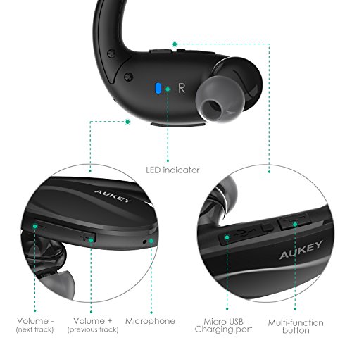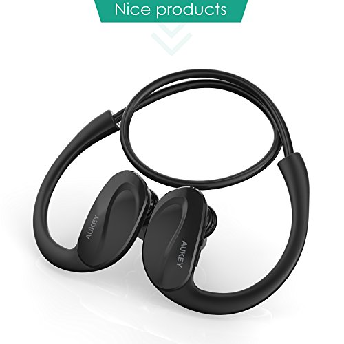 Break a sweat Stay motivated, work harder and run faster every time with the Aukey wireless Bluetooth Stereo headset: a 1- oz feather weight, behind-the-ear style sports headphone. Its flexible collar will stay put and doesn't move when you do. The headset snugs your ear with dynamic sound during your workout.