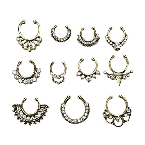 Maggie 11Pcs Fake Septum Clicker Nose Ring Rhinestone Non Piercing Hanger Clip Body Jewelry
