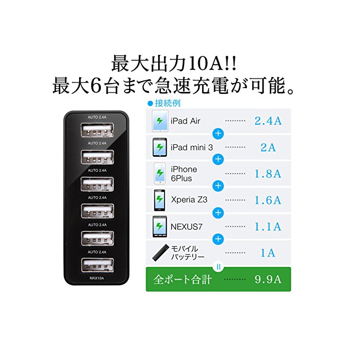 원본상품명: 【Amazon.co.jp限定】 サンワダイレクト 50W 6ポ?ト USB充電器 急速充電 高出力10A 出力自動判別 700-AC011AZ 【20ヶ月保?】