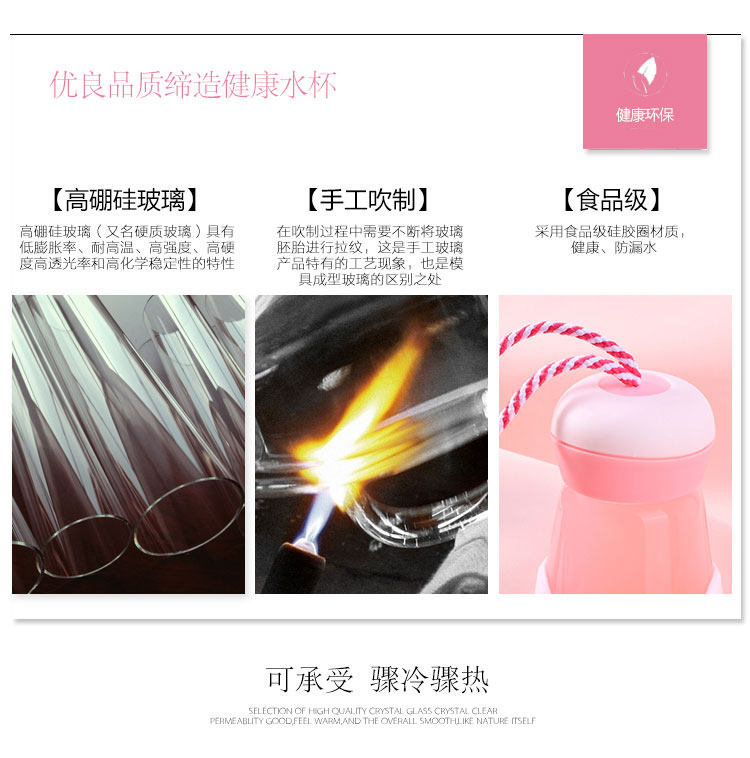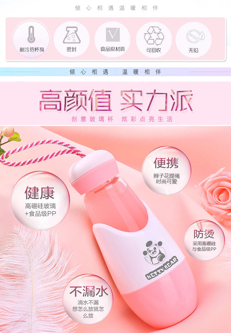 学生女卡通可爱创意单层随手杯手提玻璃杯耐热便携式喝水杯子水瓶