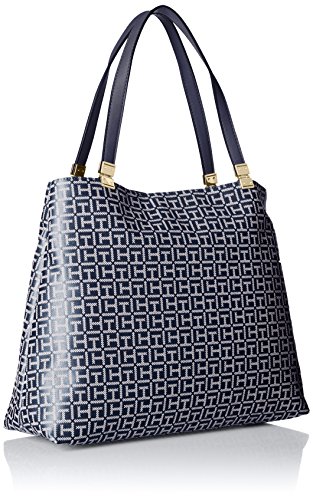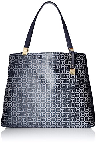 Carry all your necessities in style with the stunning Tommy Hilfiger® Monogram Jacquard Tote. Woven handbag features signature logo print throughout. Magnetic snap closure. Dual flat shoulder straps. Exterior flaunts hanging brand lock charm, polished hardware, and tonal stitching. Flat base. Lined interior features center zip pocket, back wall zip pocket, and two slip pockets for organization. Imported. Measurements: Bottom Width: 16 in Depth: 5 in Height: 13 in Strap Length: 20 in Strap Drop: 9 1/2 in Weight: 1 lb 6 oz This product may have a manufacturer's warranty. Please visit the manufacturer's website or contact us at warranty@support.zappos.com for full manufacturer warranty details.