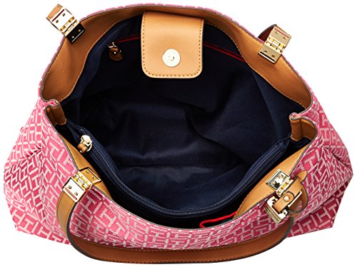 Tommy Hilfiger Hinge Jacuard Travel Tote, Raspberry White, One Size