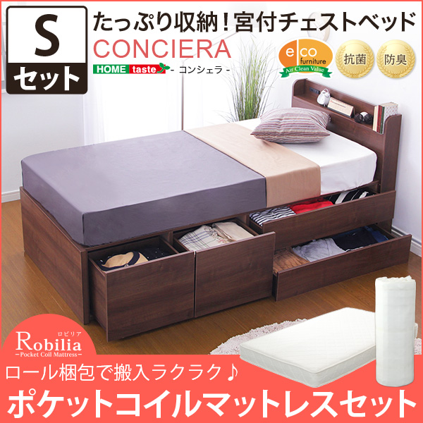 チェストベッド【コンシェラ-CONCIERA-(シングル)】(ロール梱包のポケットコイルスプリングマットレス付き)