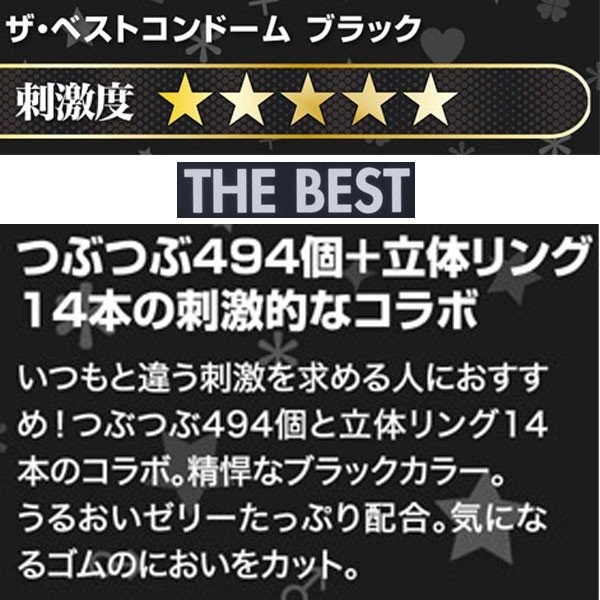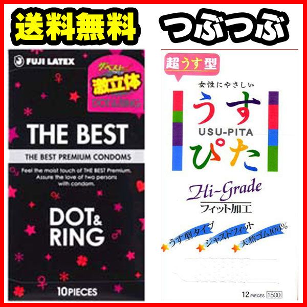 「送料無料」対象商品。 ◆定形外郵便(ご注意点) ・この商品は定形外郵便で送料が無料です。 ・ご自宅郵便受けへの投函で配達は完了です。(日時指定不可) ・定形外郵便でも代引きはできますが、時間指定はできません。。 ・宅配便扱い商品との同梱は宅配便送料が加算されます。 【商品詳細】 葵つかささんもオススメ☆ 不二ラテックスと雑誌「ザ・ベスト」が共同開発したSafeSexコンドーム。 【セット内容】 ◆品名:ザ・ベストコンドーム DOT&RING(ブラック) ◆特徴:494個ツブツブ、立体リング、粒状リンクル、気になるゴムのにおいをカット ◆入数:10個 ◆医療機器認証番号:219BBZX00249000 ◆定価:1080円 ◆品名:うすぴたハイグレード ◆特徴:うすがた・フィット加工・多数のつぶ状 ◆入数:12個 ◆定価:1620円 ( 避妊具 スキン こんどーむ ごむ ゴム うすい メール便 安心の梱包 痛がる 挿入時に痛くない 安心梱包 完全 目隠し わからないように バイブ お試し )
