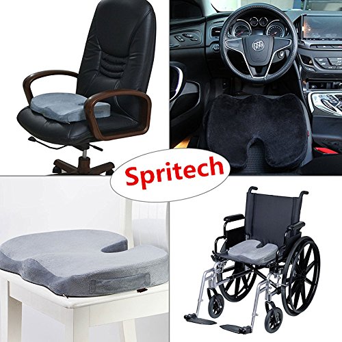 Spritech Cool Gel-Enhanced Coccyx Orthopedic Office Chair and Car Seat Cushion with Soft and Firm Balanced Memory Foam to Relieve Back,Tailbone and Sciatica Pain (Black)