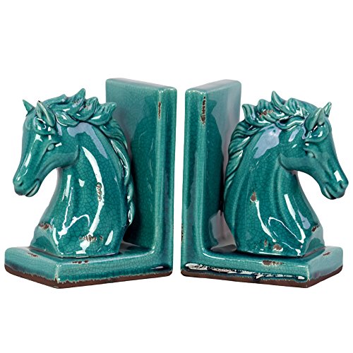 Benzara Stoneware KnightS Horse Head Bookend-Assortment of 2-Blue, 2 Piece