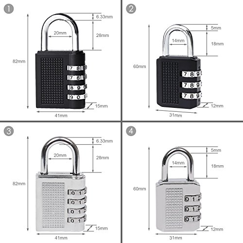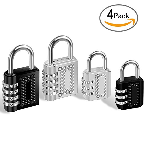 4 Pack Combination Padlock 4 Digit 3 Digit Padlock for School, Gym & Sports Locker, Luggage Suitcase Baggage Locks, Filing Cabinets, Fence, Toolbox, Hasp Storage