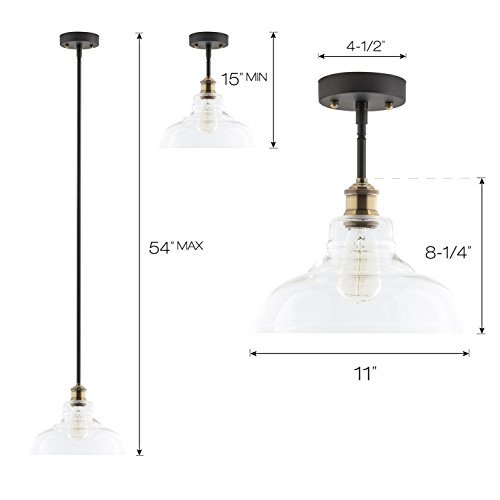 - MODERN VINTAGE STYLE - evoking early 20th century factory lighting, the Lucera collection complements a wide variety of décor, from starkly contemporary to warm farmhouse. Features an 11" dia clear glass shade, and is perfect for kitchens, over counters and islands, hallways and bathrooms.