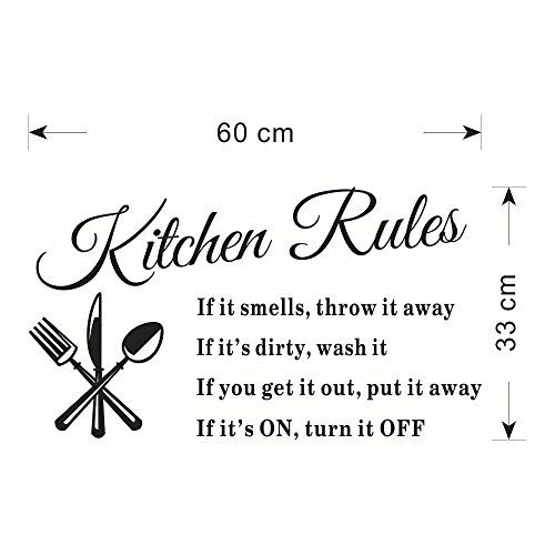 Kitchen Rules Removable Vinyl stickers quote Wall Decals for Kitchen, Dining Room