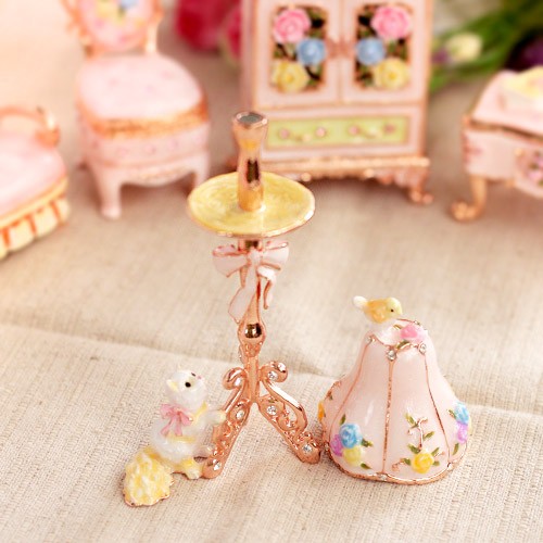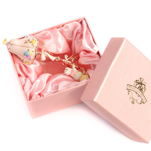 | ジュエリーボックスと言えば、指輪やピアス、ネックレスなどのアクセサリーを入れる引き出し型のケースを思い浮かべる方が多いかもしれません。 ピィアースのジュエリーボックスは、動物や花などをモチーフに作られ、合金製でずっしりとした重さがあります。また高品質のクリスタルガラスを贅沢に使用。まるでジュエリーボックスそのものが宝石のような、高級感溢れる仕上がりです。 小物入れとしても使えるように開閉口には磁石が取り付けてあり、アクセサリーなどなくしやすいアイテムの収納ができます。キラキラと美しく輝く宝石箱は、そのまま飾って楽しめるインテリア雑貨として多くの方に愛されています。 国内トップクラスのジュエリーボックスメーカーであるピィアースは、2004年ごろから本格的に宝石箱の製造を始め、現在のジュエリーボックスはなんと300種類以上。大規模展示会でもご好評いただいており、全国有名百貨店でも販売されています。 自社工場でひとつひとつ丁寧に手作りし、原型作成、研磨、加工、着色、小さなクリスタルガラスの取り付けなども全て手作業で行われるこだわりのハンドメイド品。完成後は厳しい検品の後、丁寧に梱包作業をしお客様にお届けしております。 ピィアース商品は、全国有名百貨店および全国有名宝石店チェーンにてお取り扱いいただいている高品質商品です。 ★自分へのご褒美に…コレクションして並べて飾ると、さらにかわいらしさUP! ★恋人へのプレゼント…中にアクセサリーを入れて、サプライズな贈り物として ★家族への感謝ギフト…お母さんや姉妹へ、日頃のありがとうの気持ちを込めて ★誕生日プレゼント…お友達の喜ぶ顔が見たいから、いつもと違うキラキラギフトを ★小さな女の子へ…まるでお姫様が使っているようなキラキラ宝石箱は女の子の憧れ! |