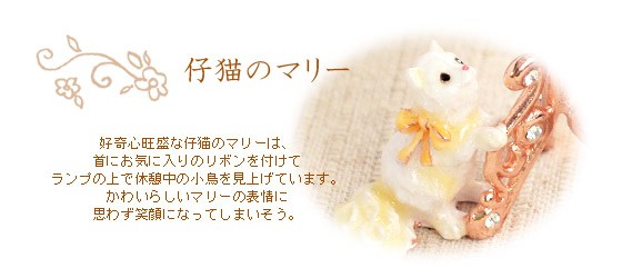 | 人気のミニチュア家具シリーズに、『マリーのスタンドランプ』が登場。 仔猫のマリーのかわいらしいしぐさに、ほっと癒されそう。 ![]() ![]() ![]()