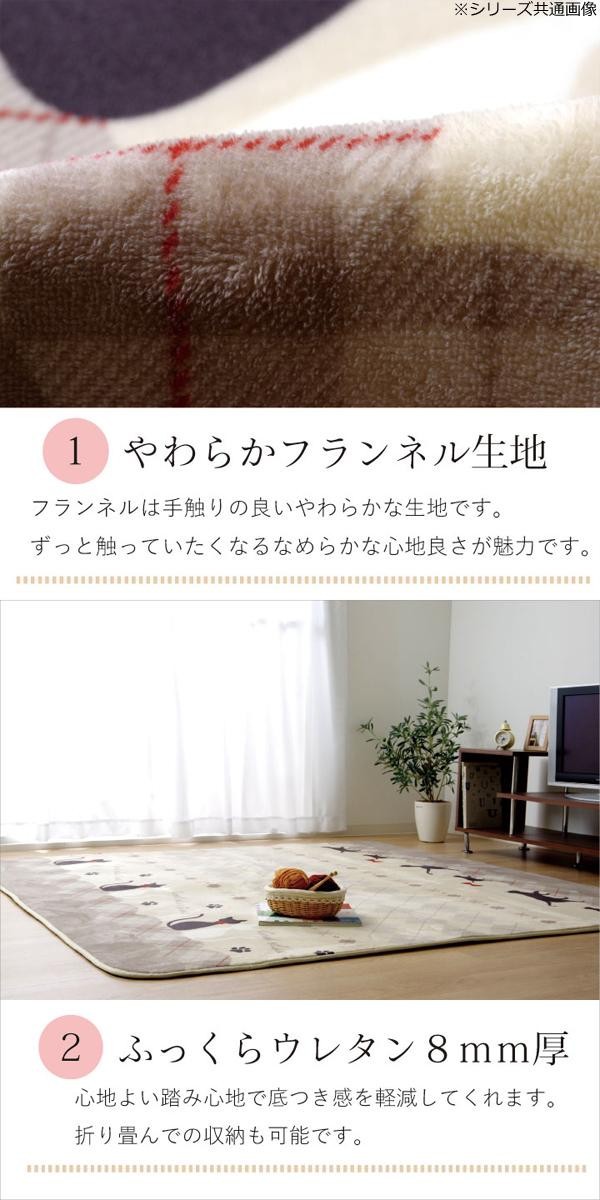 なめらかな肌触りのフランネルを使用したラグです。ホットカーペットカバーとしてもご使用いただけます。