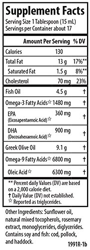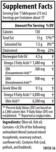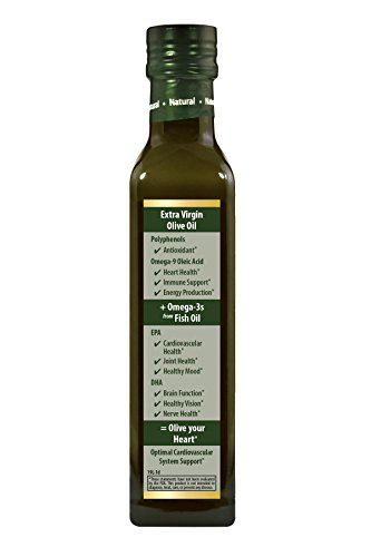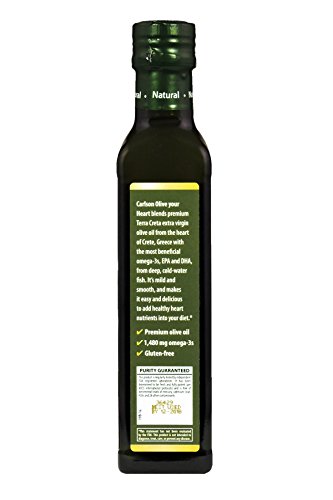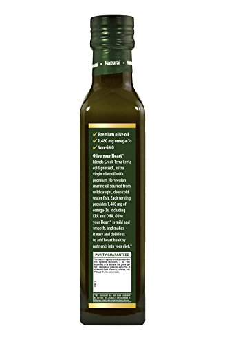 Studio : Carlson Publisher : Carlson Binding : Health and Beauty Product Description Carlson Olive your HeartTM blends cold-pressed Greek Terra Creta extra virgin olive oil with premium Norwegian marine oil sourced from deep, cold-water fish. Each serving provides 1,480 mg of omega-3s, including EPA and DHA. Olive your HeartTM is mild and smooth, and makes it easy and delicious to add heart healthy nutrients into your diet. For optimal heart health, the American Heart Association (AHA) recommends substituting good fats (monounsaturated and polyunsaturated) for bad fats (saturated and trans). An easy way to do this is by choosing a healthy oil, such as olive oil. Blends are also a great choice. But Olive your Heart may be the absolute best heart smart choice, combining the cardiovascular benefits of olive oil and marine sourced omega-3s. High-quality extra-virgin olive oil naturally contains important antioxidants, called polyphenols. Like other antioxidants, polyphenols promote healthy inflammation balance. Each serving of Olive your Heart also offers a healthy dose of the important omega-3s EPA and DHA. Th AHA suggests we eat at least two 3.5-ounce servings of oily fish per week to receive the recommended amount of omega-3s. Since most of us don't get this amount from diet alone, Olive your Heart can be a great option. Carlson Olive your Heart also naturally provides the omega-9 oleic acid (a staple of the Mediterranean diet). Omega-9s support a healthy inflammatory response, and promote immune and cardiovascular system health. When our body has enough omega-3s and omega-6s, it can produce omega-9s. If our levels are low, we must get omega-9s from our diet. For a delicious, premium olive oil that provides polyphenols and sneaks in the health benefits of omega-3s and omega-9s, choose Carlson Olive your Heart. 0