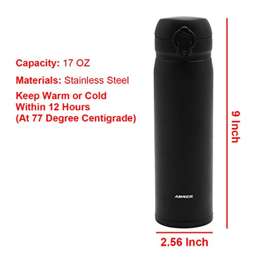 ABNER 17oz Double Wall Vacuum Cool Insulation Stainless Steel Water Bottle Leak- proof ,HomeOutdoor Travel Coffee Mug with Lid,Keeps Cold And Hot