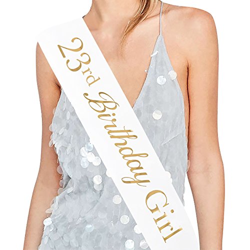 - -SUPER VALUE: This "23rd Birthday Girl" sash is made of white satin fabric, super pretty with gold font. Sash comes ready to wear.