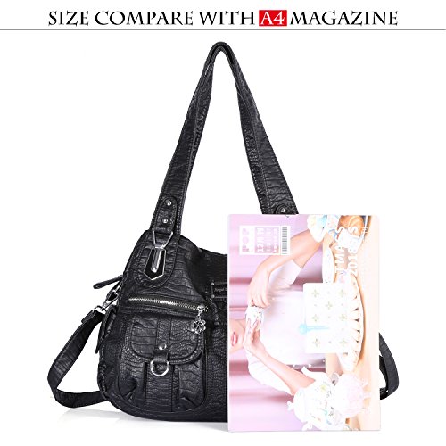 5.Large enough for daily use, fits Ipad, wallet, mobile phone, books and more.Fabric-lined spacious interior with two roomy main compartments. One with interior zippered pocket and the other with cell phone and sunglasses pockets. Comfortably holds an iPad, iPad Mini or a tablet 10"x8"x1" and under. Perfect for Using in Office, School, Dating,Travel or any Other Daily Occasions.