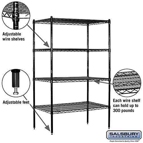 Salsbury Industries Stationary Wire Shelving Unit, 36-Inch Wide by 63-Inch High by 18-Inch Deep, Black