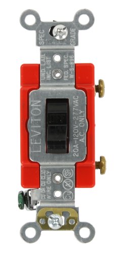 Leviton 1221-2E 20-Amp, 120/277-Volt, Toggle Single-Pole AC Quiet Switch, Extra Heavy Duty Spec Grade, Self Grounding, Black