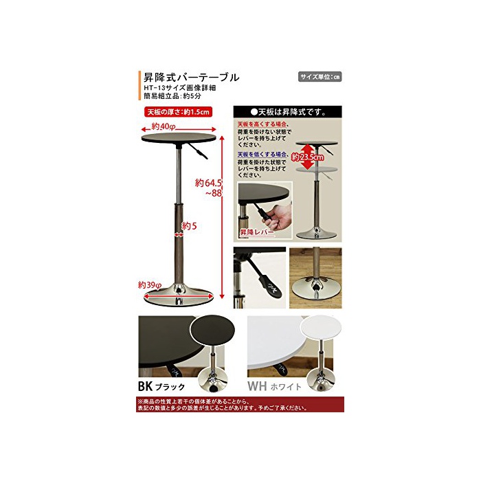 【■바 테이블 사양】●사이즈:W400xD400xH645~880mm,베이스의 직경:390mm●중량:5.4kg●조립식(1포장)●소재:(책상이나 카운터의) 널찍하고 평평한 윗부분:적층합판 PU도장 고, 다리:스틸 파이프 크롬 도금 ●(책상이나 카운터의) 널찍하고 평평한 윗부분에 가중을 걸(걸치) 라고(면) 약간 가라앉아 포함고 있습니다●규격:가스압 식승강【■바 체어 사양】●사이즈:W340xD390xH690~900mm,SH(좌면높음)590~800mm●중량:6.5kg●조립식(1포장)●소재:(책상이나 카운터의) 널찍하고 평평한 윗부분:적층합판 PU도장 고, 다리:스틸 파이프 크롬 도금 ●규격:가스압 식승강