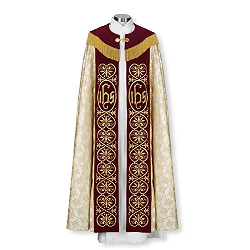 Studio : AT001 Publisher : AT001 Binding : Jewelry Product Description Vicenza Collection New to our CambridgeTM tailored apparel line is a beautifully appointed vestment line: Vicenza Collection made from 100% Satin Polyester and rich velvet with custom intricate designed gold embroidery. This collection features a stunning gold jacquard with cross and wheat design. There are two monastic style chasubles to choose from, one dalmatic, cope and humeral veil with rich burgundy velvet that is embellished with gold embroidery. The chasubles and dalmatic come with a matching understole with no extra cost to you. -- Satin/Velvet -- 55 1/2" L Care Instructions: Dry Clean Only 0