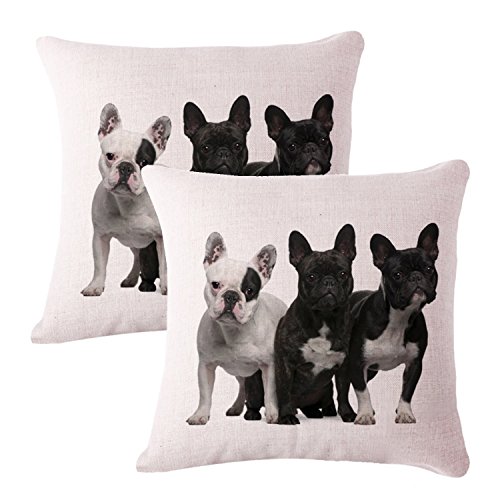 Queenie® - 2 Pc Dog Breed Decorative Pillowcase Cushion Cover for Sofa Throw Pillow Case 18 X 18 Inch 45 X 45 Cm, Set of 2 (3 bull dogs)