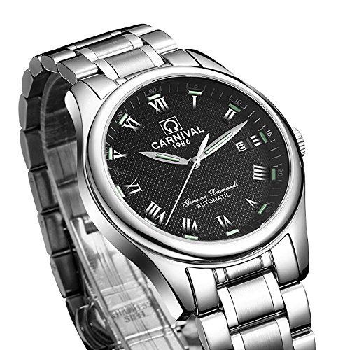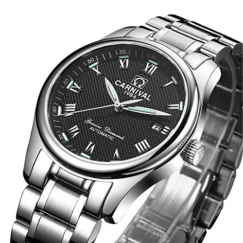 -. Title : JIANIANHUA Mens BusinessTritium Luminous Automatic Mechanical Watch Wristwatch - silver bezel black dial