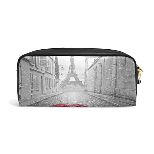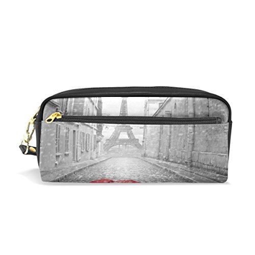 -. Title : Jennifer Portable Pouch Paris Eiffel Tower With Red Umbrella In Street PU Leather School Pen Case Stationary Pencil Bags Water Proof Cosmetic Bag Makeup Beauty Case