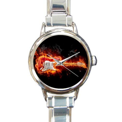 -. Title : Hot Sale Christmas Day Gift Watch Cool Design Flame Guitar Round Italian Charm stainless steel Watch