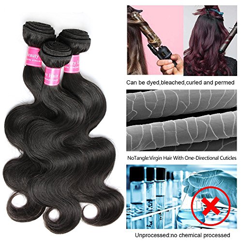 Brazilian Virgin Hair 3 Bundles Body Wave Weft 10A Unprocessed Human Hair Weave Extensions Natural Color 3pcs (12 14 16)