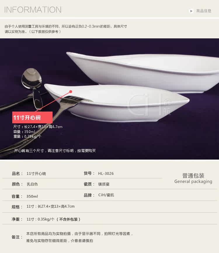 瓷航11英寸开心碗水果沙拉碗汤碗叶形碗创意碗陶瓷日用餐具350ml