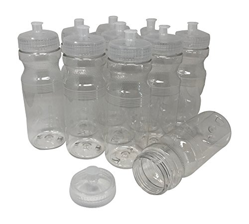 This 10 pack of plastic 24 ounce sports bottles are perfect for all of your sports an fitness needs. Included with all bottles are a matching wide mouth push/pull lid! These bottles are made in the USA of 100% BPA and lead free materials using PET Plastic. These sports bottles are perfect for any use including but not limited to Corporate events, bicycling, fitness, screen printing, Do it yourself projects, DIY, beach, birthdays, parties, events, bachelor and bachelorette parties, fraternities, sororities, outdoors, camping, BBQ's, gatherings, fundraisers, weddings, businesses, organizations, monograms, or just for everyday use.